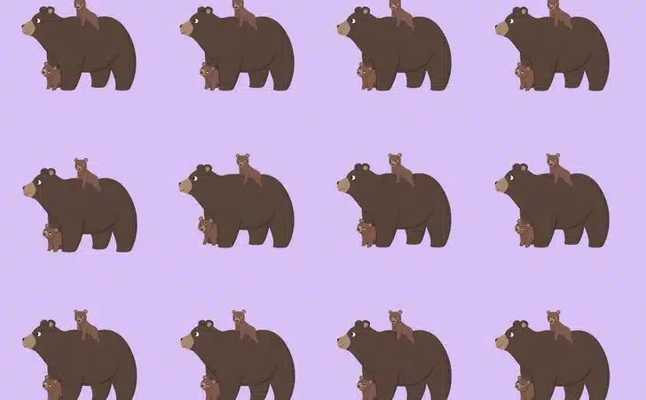 Ovaj zadatak izgleda jednostavno na prvi pogled: pred vama je niz simpatičnih medvjeda i njihovih mladunaca. Svi djeluju gotovo identično – ali tu se krije jedna mala, lukava razlika. Samo jedan par medvjeda izgleda drugačije od ostalih. Pitanje je: možete li ga pronaći brže od drugih?